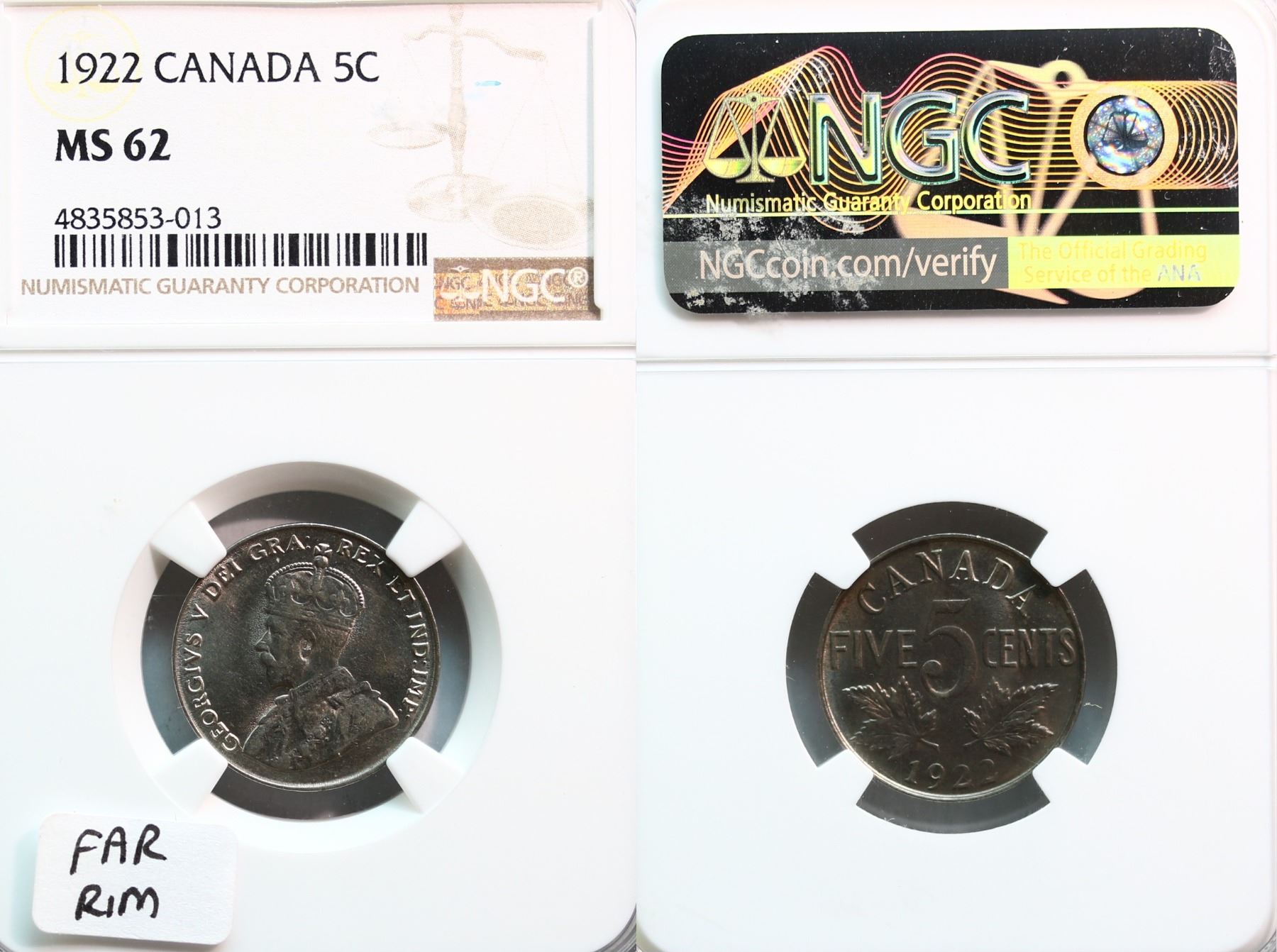 1922 5¢ "Near Rim" NGC Choice Mint State-62