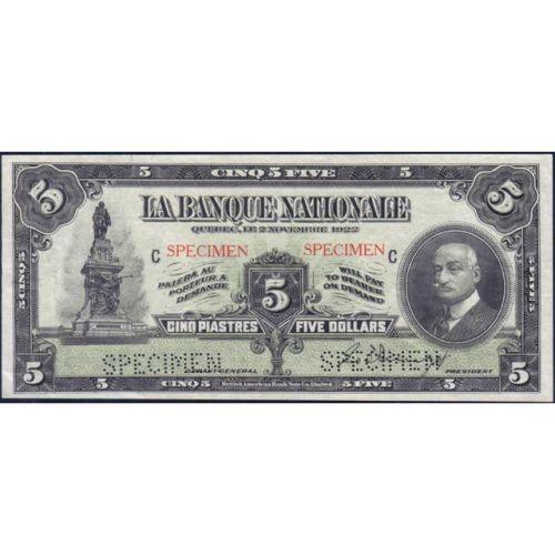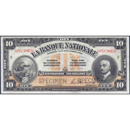 1922 Five Dollars La Banque Nationale Specimen, CH 510-22-02S Plate Position C, PMG Choice Uncirculated 64 and 1922 Ten Dollars La Banque Nationale Specimen, CH 510-22-04S Plate Position C, PMG Gem Uncirculated 65 Exceptional Paper Quality. Two notes