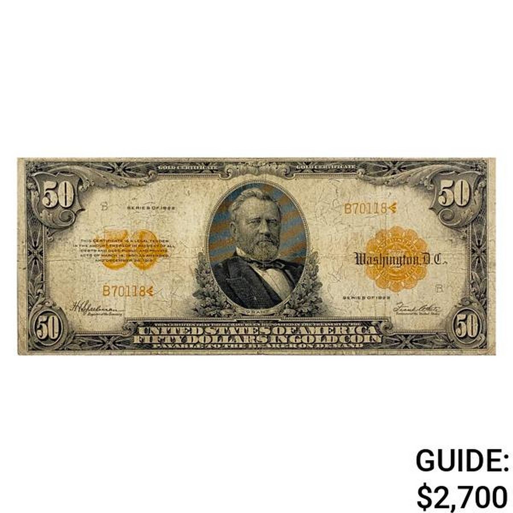 1922 $50 "GRANT" GOLD CERTIFICATE VERY FINE