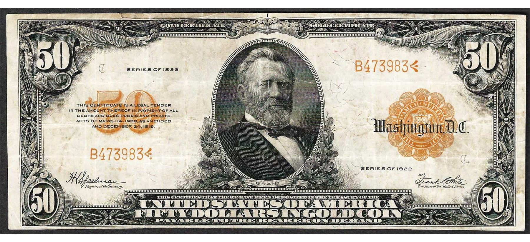 One 1922 $50 Gold Certificate Note Mule.