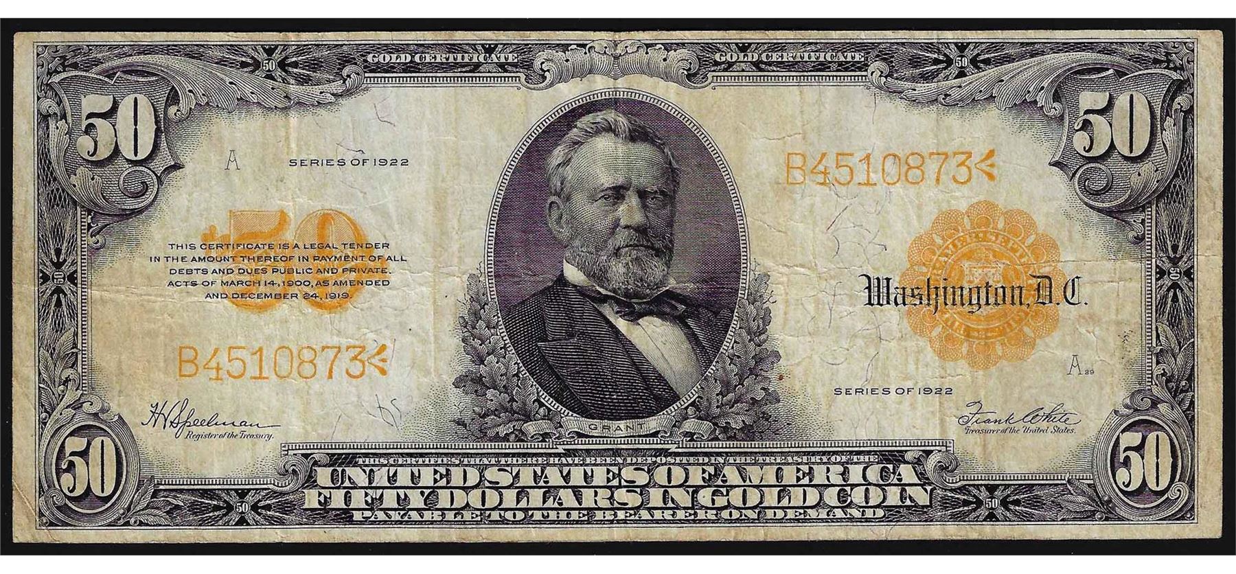 One 1922 $50 Gold Certificate Note.