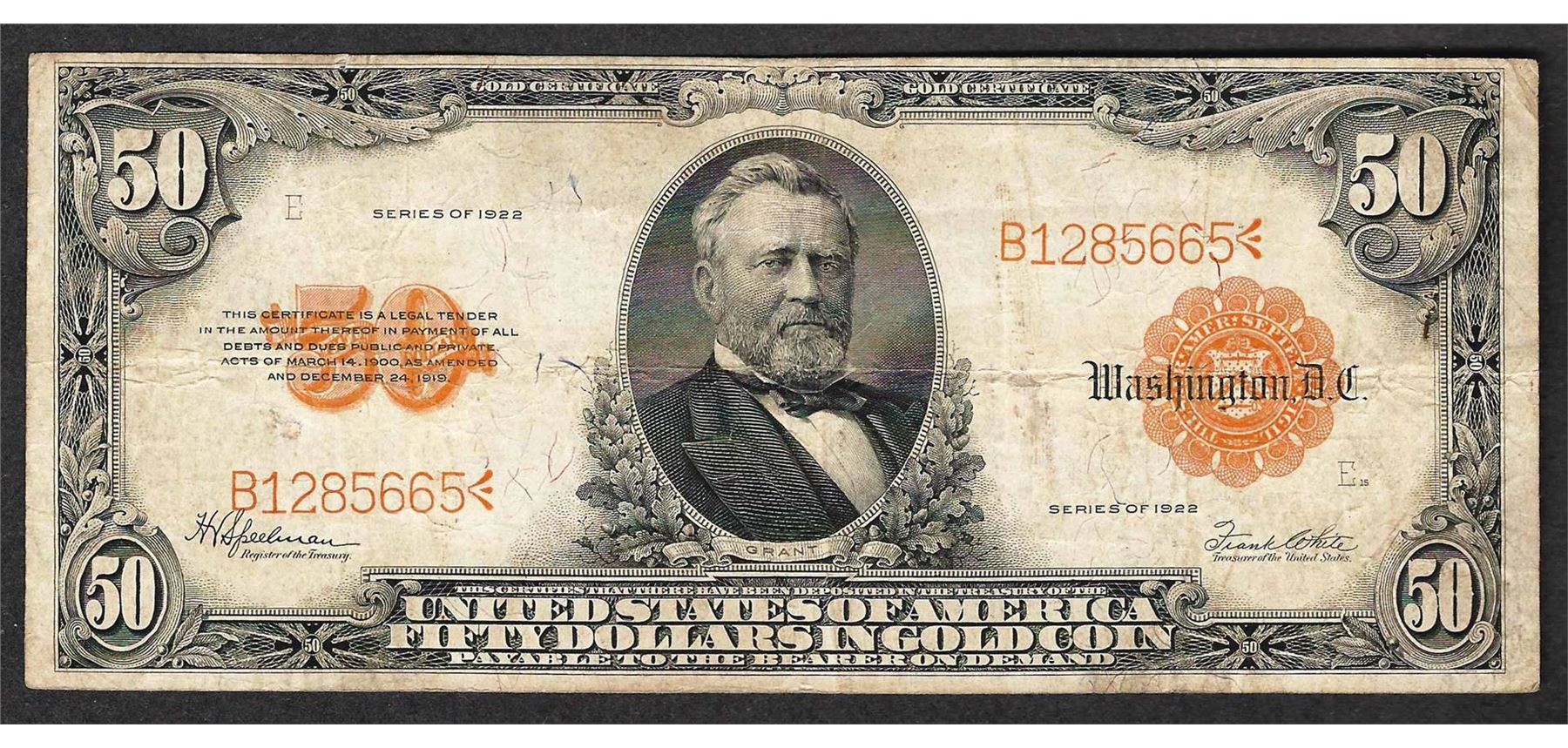 One 1922 $50 Gold Certificate Note.
