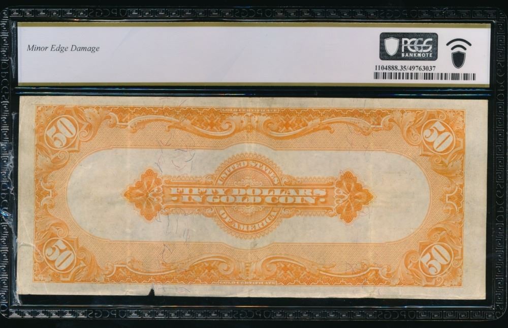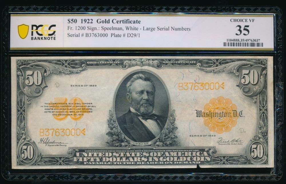 One 1922 $50 Gold Certificate PCGS 35.