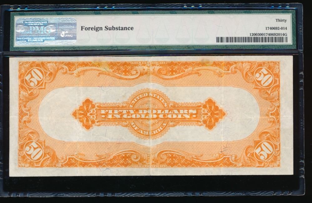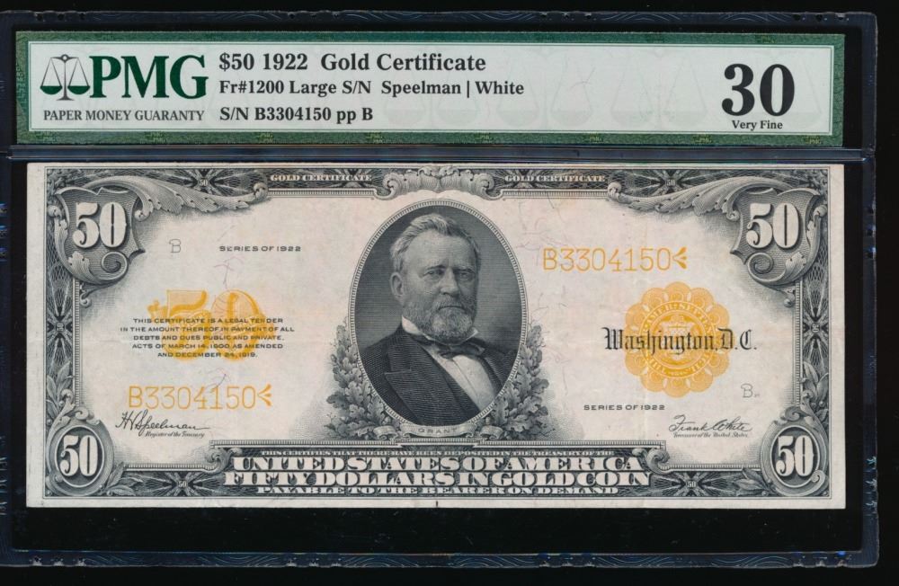 One 1922 $50 Gold Certificate PMG 30.