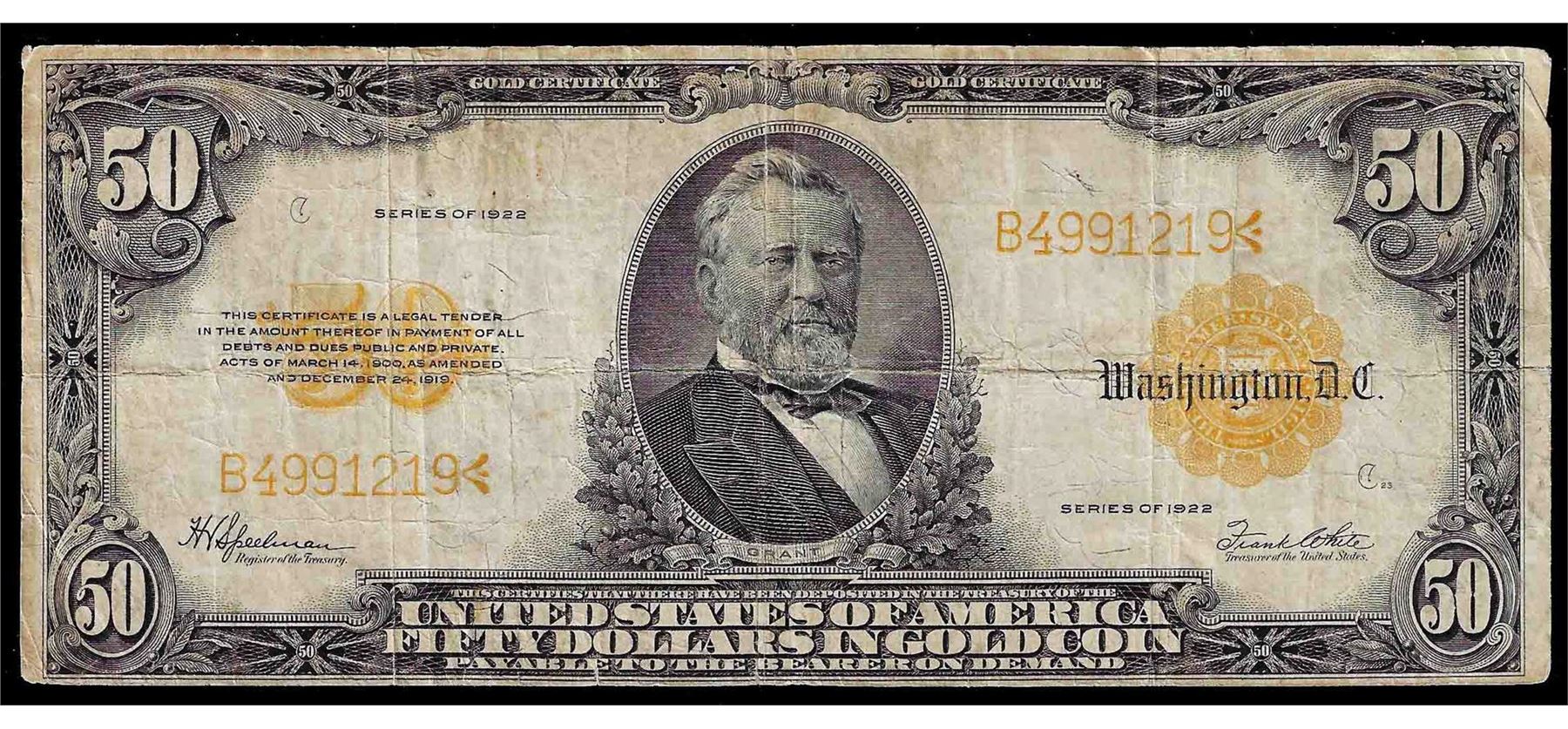 One 1922 $50 Large Size Gold Certificate.