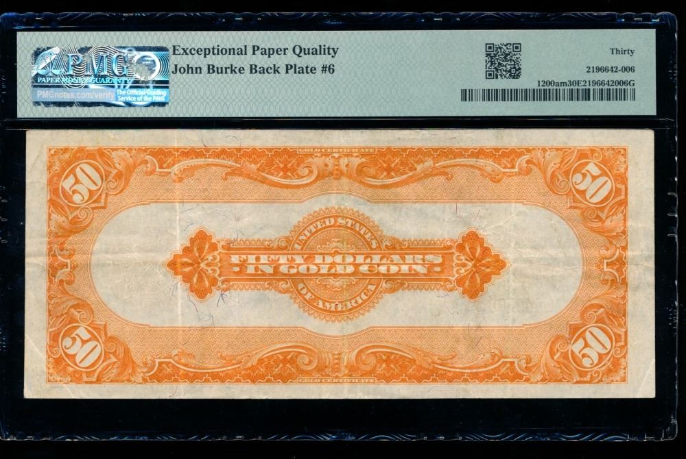 1922 $50 Mule Gold Certificate PMG 30EPQ