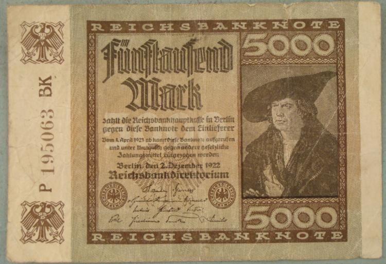 1922 5000 German Mark Inflationary Currency Note * May look slightly different from the bill shown *