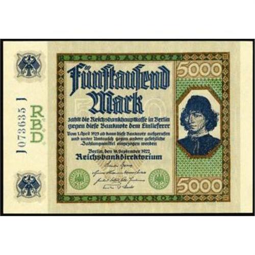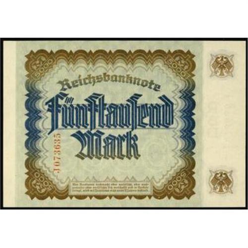 <style type="text/css"> body, td, th { font-family: Arial, Helvetica, sans-serif; font-size: 12px; color: #482424; margin: 0px; padding: 0px; } #header { background-image: url(http://www.bowersandmerena.com/ebay/images/template_v3_01.gif); clear: both; background-color: #590303; border-top-width: 2px; border-top-style: solid; border-top-color: #B38C4F; } #header #header_wrapper { height: 75px; clear: both; width: 800px; margin-right: auto; margin-left: auto; background-image: url(http://www.bowersandmerena.com/ebay/images/template_v3_03.gif); background-repeat: no-repeat; background-position: right; color: #F3EDCC; } #header #header_wrapper #header_logo { float: left; height: 75px; width: 444px; background-image: url(http://www.bowersandmerena.com/ebay/images/template_v3_02.gif); background-repeat: no-repeat; font-size: 10px; text-transform: capitalize; color: #B38C4F; } #header #header_wrapper #header_right { float: left; height: 75px; width: 356px; text-align: right; } #header #header_wrapper #header_right #headerLoginBtn { margin-bottom: 30px; } #header #header_wrapper #header_right input#txtSearch { color: #B49056; border: 1px solid #B49056; width: 175px; padding-top: 3px; padding-right: 3px; padding-bottom: 4px; padding-left: 3px; } #nav { height: 37px; background-image: url(http://www.bowersandmerena.com/ebay/images/template_v3_05.gif); clear: both; } #nav #nav_wrapper { height: 35px; width: 800px; margin-right: auto; margin-left: auto; border-left-width: 1px; border-left-style: solid; border-left-color: #B38C4F; } #nav #nav_wrapper a { padding-right: 15px; padding-left: 15px; border-right-width: 1px; border-right-style: solid; border-right-color: #B38C4F; height: 25px; padding-top: 10px; display: block; float: left; text-decoration: none; font-weight: bold; color: #5D0303; } #nav #nav_wrapper a:hover { color: #B38C4F; } #nav #nav_wrapper #search { float: right; padding-top: 7px; } #nav #nav_wrapper #search #txtSearch { font-family: Arial, Helvetica, sans-serif; font-size: 10px; text-transform: uppercase; color: #D2AE75; border: 1px solid #B38C4F; padding: 3px; } #content_bgd { background-image: url(http://www.bowersandmerena.com/ebay/images/template_v3_09.gif); background-repeat: repeat-y; background-position: center; padding-top: 15px; padding-bottom: 15px; background-color: #FBFBDB; } #content_wrapper { clear: both; height: auto; width: 800px; margin-right: auto; margin-left: auto; } .LotDetailWhite { line-height:normal; font-size:13px; font-family: arial,helvetica,sans-serif; color: White; font-weight: bold; } .LotDetailInformation { line-height:normal; font-size: 13px; font-family: arial,helvetica,sans-serif; } .LotDetailMessage { line-height:normal; font-size: 13px; font-family: arial,helvetica,sans-serif; color: red; } } tr.HeaderAuctionTitle td { color: #000000; font-weight: bold; padding: 2px; background-image: url(http://www.bowersandmerena.com/ebay/images/template_v3_05.gif); background-repeat: repeat-x; border-bottom-width: 1px; border-bottom-style: solid; border-bottom-color: #B38C4F; } table.AuctionSummary a, table.AuctionSummary a:link, table.AuctionSummary a:visited { color: #0000FF; text-decoration: none; } } td.tableHeaderLeft { border-left-width: 1px; border-left-style: solid; border-left-color: #B38C4F; } td.tableHeaderRight { border-right-width: 1px; border-right-style: solid; border-right-color: #B38C4F; } td.tableCellMiddle { border-left-width: 1px; border-left-style: solid; border-left-color: #B38C4F; border-right-width: 1px; border-right-style: solid; border-right-color: #B38C4F; padding: 5px; } tr.footer td { border-top-width: 1px; border-top-style: solid; border-top-color: #B38C4F; } </style> </head> <body> <div id="header"> <div id="header_wrapper"> <div id="header_logo"> </div> <div id="header_right"> </div> </div> </div> <div id="nav"> <div id="nav_wrapper"> <a href="http://www.bowersandmerena.com">Our eBayLive Auctions</a> <a href="#PaymentInfo">Payment Information</a> <a href="#ShippingInfo">Shipping Information</a> <a href="#About">About Bowers and Merena</a> </div> </div> <div id="content_bgd"> <div id="content_wrapper"> <table width="100%" border="0" cellpadding="5" cellspacing="0" class="AuctionSummary"> <tbody> <tr class="HeaderAuctionTitle" style="height: 25px;"> <td align="left" class="tableHeaderLeft" > </td> <td align="center" class="tableHeaderRight"> <span style="font-size: large;">Lot #2750. Germany. 1922 5000 Mark. Republic Treasury Note. Third Issue. Unc.</span> </td> </tr> <tr> <td colspan="3" class="tableCellMiddle"> P-77. A spectacular note from a challenging-to-locate design type. The note is a bright Uncirculated piece with immaculate detail and technical quality and a reverse multi-colored printing that is perfectly done. The note is fairly scarce in any grade and very difficult to find in high grade such as this note. We could not imagine a finer example to exist.
