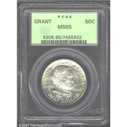 1922 50C Grant MS65 PCGS. This fully lustrous Gem is well detailed for the issue with a few inconspicuous sprays of tan iridescence here and there. Striations (as struck, and as often seen on Grant Halves) are seen in the obverse field. Important notice: We expect to be auctioning lots at the rate of 200-250 per hour. Sometimes eBay Premier live bid software cannot keep up with that pace, so we strongly recommend that you place a realistic proxy bid now as insurance to avoid disappointment. Also please note that all Heritage/CAA lots purchased through eBay Premier carry a 20% Buyer's Premium.