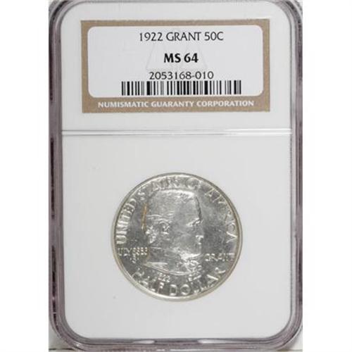 <B>1922 50C Grant no Star MS64 NGC.</B></I> NGC Census: (1341/846). PCGS Population (1255/908). Mintage: 67,405. Numismedia Wsl. Price for NGC/PCGS coin in MS64: $252. (#9306)<BR><BR><b>Shipping:</b> Coins & Currency (<a target="_blank" href="http://www.heritageauctions.com/common/shipping.php">view shipping information</a>)