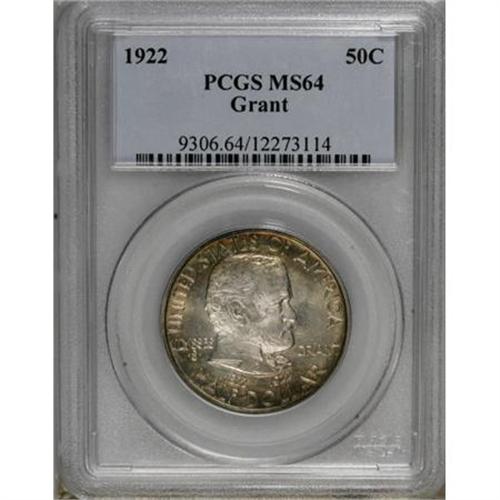 <B>1922 50C Grant no Star MS64 PCGS.</B></I> PCGS Population (1305/935). NGC Census: (1382/853). Mintage: 67,405. Numismedia Wsl. Price for NGC/PCGS coin in MS64: $240. (#9306)<BR><BR><b>Shipping:</b> Coins & Currency (<a target="_blank" href="http://www.heritageauctions.com/common/shipping.php">view shipping information</a>)