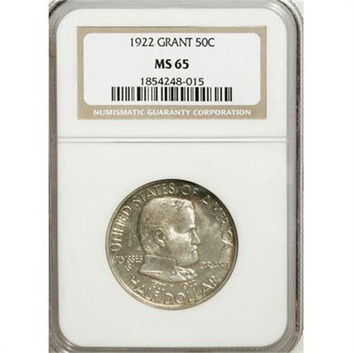 <B>1922 50C Grant no Star MS65 NGC.</B></I> NGC Census: (631/212). PCGS Population (659/244). Mintage: 67,405. Numismedia Wsl. Price for NGC/PCGS coin in MS65: $650. (#9306)<BR><I>From The Frank DuVall Collection of U.S. Commemoratives.</B></I><BR><BR><b>Shipping:</b> Coins & Currency (<a target="_blank" href="http://www.heritageauctions.com/common/shipping.php">view shipping information</a>)