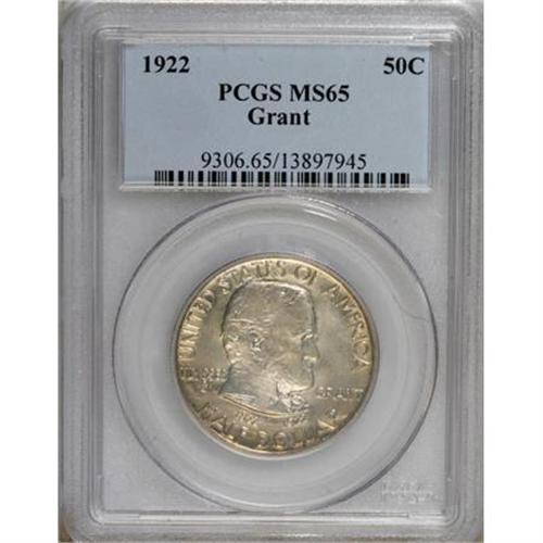 <B>1922 50C Grant no Star MS65 PCGS.</B></I> PCGS Population (659/244). NGC Census: (631/212). Mintage: 67,405. Numismedia Wsl. Price for NGC/PCGS coin in MS65: $650. (#9306)<BR><BR><b>Shipping:</b> Coins & Currency (<a target="_blank" href="http://www.heritageauctions.com/common/shipping.php">view shipping information</a>)