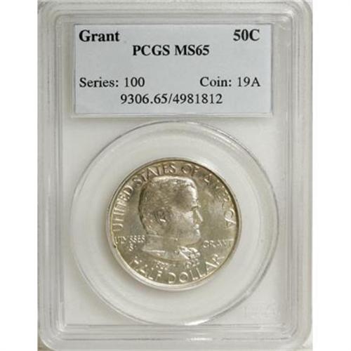 <B>1922 50C Grant no Star MS65 PCGS.</B></I> An appealing Gem example of this popular issue, well-defined save for a touch of softness at the back of Grant's head. Traces of gold and violet patina grace parts of each side. Though collectors decried the use of a star-shaped punch to create an artificial variety, a number of purchasers acquired both With Star and plain pieces.<BR><BR><b>Shipping:</b> Coins & Currency (<a target="_blank" href="http://www.heritageauctions.com/common/shipping.php">view shipping information</a>)
