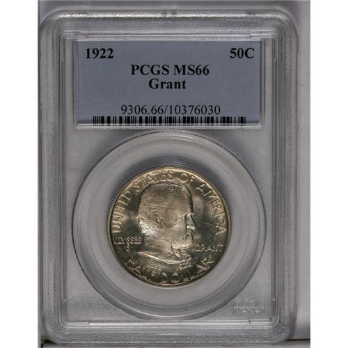 <B>1922<50C> Grant no Star MS66 PCGS.</B></I> A thin veneer of tan-gold color runs over highly lustrous surfaces that are devoid of mentionable marks. The design elements are sharply impressed throughout.