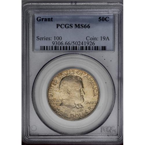 <B>1922<50C> Grant No Star MS66 PCGS.</B></I> Dazzling luster radiates through light golden-tan patination, and the design features are well impressed. The surfaces are nicely preserved throughout. PCGS has certified 33 pieces finer. (3/06). <BR><BR><B>Important notice:</B> Heritage usually auctions material at the rate of 200-250 lots per hour. On some occasions eBay Live bid software or the Internet may not be able to keep up with the pace of the auction. We recommend placing a realistic absentee bid now as insurance to avoid disappointment. Occasionally the auctioneer may eliminate or reject an eBay Live bid, and the auctioneer may also reopen a lot after the close of the eBay live bidding (usually because we missed an audience bid), and may reject your bid even if it shows you as the winning bidder. By bidding via eBay Live, you agree that Heritage may award the lot to another bidder at its sole discretion under the circumstances described above or any other reasonable circumstances. Since eBay bids are not shown to us until we open the lot on the floor, we treat those bids just like floor bids. In most cases the floor responds before the eBay bid is presented to us, due to Internet lag time, so for consistency we have made it a policy that floor bids are always considered first over tie eBay live bids. Also please note that all Heritage lots purchased through eBay Live carry a 20% Buyer's Premium. Please make sure you read the Terms and Conditions before you bid. This lot is being auctioned in conjunction with a live floor auction by Heritage Galleries & Auctioneers. All final auction and invoice information will be supplied by Heritage Galleries & Auctioneers, and all other information should be considered preliminary. Lot:4942 <BR><BR><B>Winning Notification and Billing:</B> After the FINAL session in this auction is complete, Heritage will send e-mail and snail mail invoices. This process normally takes several days. All final auction and invoice information will be supplied by Heritage Galleries & Auctioneers, and all other information should be considered preliminary. <BR><BR>This auction will be conducted on a live auction floor and over the Internet through eBay Live. If you choose to place an absentee bid, please take a moment to <font color='#0000ff'><u><a href='http://pages.ebay.com/liveauctions/help/before/laabsentee.html'>learn how eBay Live absentee bidding works</a></u></font><font color='#000000'>