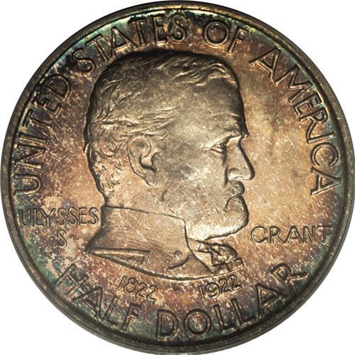 <B>1922 50C Grant no Star MS67 PCGS.</B></I> Rich golden-brown, jade-green, and steel-gray toning enriches this lustrous and beautiful example. Sharply struck and reasonably preserved. The Grant No Star type is often overshadowed by the lower mintage Grant Star variety, but few pieces have survived above Gem. In a green label holder. Population: 33 in 67, 0 finer (11/06).<BR><I>Ex: Harold Rothenberger Collection (Superior, 2/94), lot 53.</B></I><BR><BR><b>Shipping:</b> Coin/Currency (<a target="_blank" href="http://www.heritageauctions.com/common/shipping.php">view shipping information</a>)