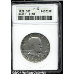 <B>1922<50C> Grant with Star Fine 12 ANACS.</B></I> A hint of silver-gray color is to be found on this moderately worn Grant commemorative. The surfaces are remarkably free of any significant contacts, considering the grade. A few wispy slide marks, particularly on the obverse, do not detract.<BR><I>From the Newark Mounds Collection.</B></I> <BR><BR><B>Important notice:</B> Heritage usually auctions material at the rate of 200-250 lots per hour. On some occasions eBay Live bid software or the Internet may not be able to keep up with the pace of the auction. We recommend placing a realistic absentee bid now as insurance to avoid disappointment. Occasionally the auctioneer may eliminate or reject an eBay Live bid, and the auctioneer may also reopen a lot after the close of the eBay live bidding (usually because we missed an audience bid), and may reject your bid even if it shows you as the winning bidder. By bidding via eBay Live, you agree that Heritage may award the lot to another bidder at its sole discretion under the circumstances described above or any other reasonable circumstances. Since eBay bids are not shown to us until we open the lot on the floor, we treat those bids just like floor bids. In most cases the floor responds before the eBay bid is presented to us, due to Internet lag time, so for consistency we have made it a policy that floor bids are always considered first over tie eBay live bids. Also please note that all Heritage lots purchased through eBay Live carry a 20% Buyer's Premium. Please make sure you read the Terms and Conditions before you bid.