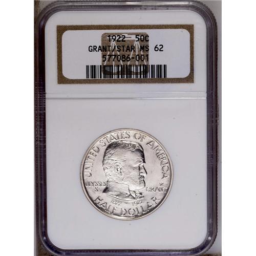 <B>1922<50C> Grant With Star MS62 NGC.</B></I> Sharply struck with unusually bright, brilliant surfaces that show a few scattered, tiny contact marks and the normal wispy obverse die striations. A flashy, attractive example.