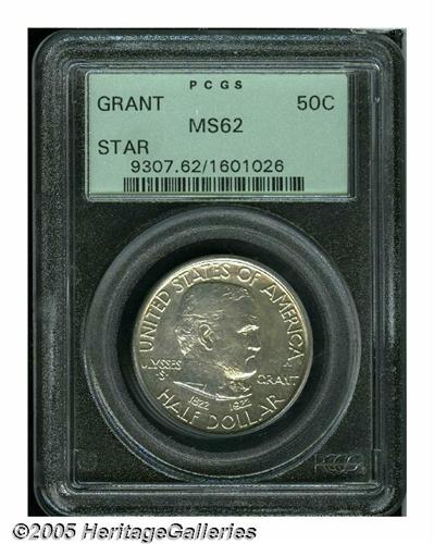 <B>1922<50C> Grant with Star MS62 PCGS.</B></I> Satiny and well struck on the obverse, with unabraded surfaces that have numerous faint striations (as struck) in the field areas. The reverse is softly struck, which seems to limit the assigned grade of the piece.