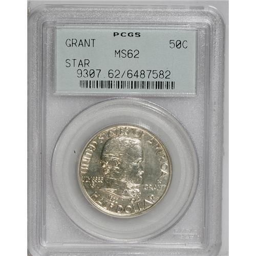 <B>1922<50C> Grant with Star MS62 PCGS.</B></I> The scarcer variety of Laura Gardin Fraser's design, with the incuse star on a largely untoned field. Lustrous with a typical strike for this issue, though long, thin abrasions in the fields limit the grade.