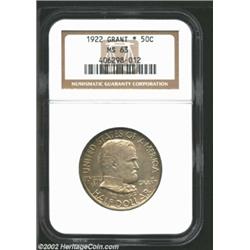 1922 50C Grant with Star MS63* NGC. Steel-gray surfaces with a light overlay of rose and lilac, there are no obvious or distracting blemishes on either side, just a bit lackluster perhaps for a higher grade. Really a nice coin for the grade. Important notice: We expect to be auctioning lots at the rate of 200-250 per hour. Sometimes eBay Premier live bid software cannot keep up with that pace, so we strongly recommend that you place a realistic proxy bid now as insurance to avoid disappointment. Also please note that all Heritage/CAA lots purchased through eBay Premier carry a 20% Buyer's Premium. Please make sure you read the Terms and Conditions.