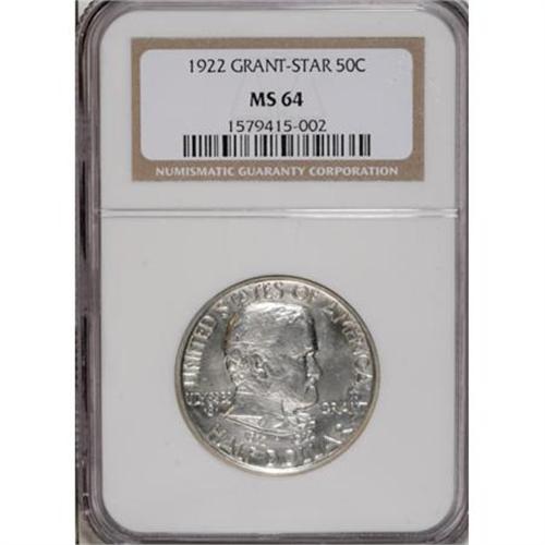<B>1922 50C Grant with Star MS64 NGC.</B></I> The surfaces are so brilliant and lustrous that they have the appearance of being plated with reflective automobile chrome. The heavy obverse die polish lines that characterize this issue are present on this example, contributing to the effect. Well-struck, untoned, and very clean.<BR><BR><b>Shipping:</b> Coins & Currency (<a target="_blank" href="http://www.heritageauctions.com/common/shipping.php">view shipping information</a>)