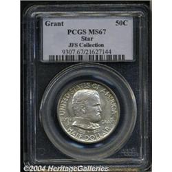 <B>1922<50C> Grant with Star MS67 PCGS.</B></I> Boldly impressed with the field striations (as struck) so common to this issue, and exceedingly bright, semi-reflective luster over the nearly untoned surfaces. Variegated earth tones adorn the upper obverse, to a slight degree, and both obverse and reverse seem pristine. One of the finest examples known of this widely acknowledged conditional rarity. Population: 3 in 67, 0 finer (3/04).<BR><I>From the JFS Collection, the #1 All-Time PCGS Registry Set.</B></I> <BR><BR><B>Important notice:</B> Heritage usually auctions material at the rate of 200-250 lots per hour. On some occasions eBay Live bid software or the Internet may not be able to keep up with the pace of the auction. We recommend placing a realistic absentee bid now as insurance to avoid disappointment. Occasionally the auctioneer may eliminate or reject an eBay Live bid, and the auctioneer may also reopen a lot after the close of the eBay live bidding (usually because we missed an audience bid), and may reject your bid even if it shows you as the winning bidder. By bidding via eBay Live, you agree that Heritage may award the lot to another bidder at its sole discretion under the circumstances described above or any other reasonable circumstances. Since eBay bids are not shown to us until we open the lot on the floor, we treat those bids just like floor bids. In most cases the floor responds before the eBay bid is presented to us, due to Internet lag time, so for consistency we have made it a policy that floor bids are always considered first over tie eBay live bids. Also please note that all Heritage lots purchased through eBay Live carry a 20% Buyer's Premium. Please make sure you read the Terms and Conditions before you bid. </span></font></tr></table></td></tr></table>