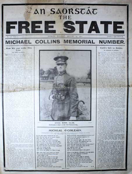 The Irish Free State newspaper Vol. 1 No. 28, first edition published on the 29th of August 1922. A scarce and interesting Michael Collins memorial edition