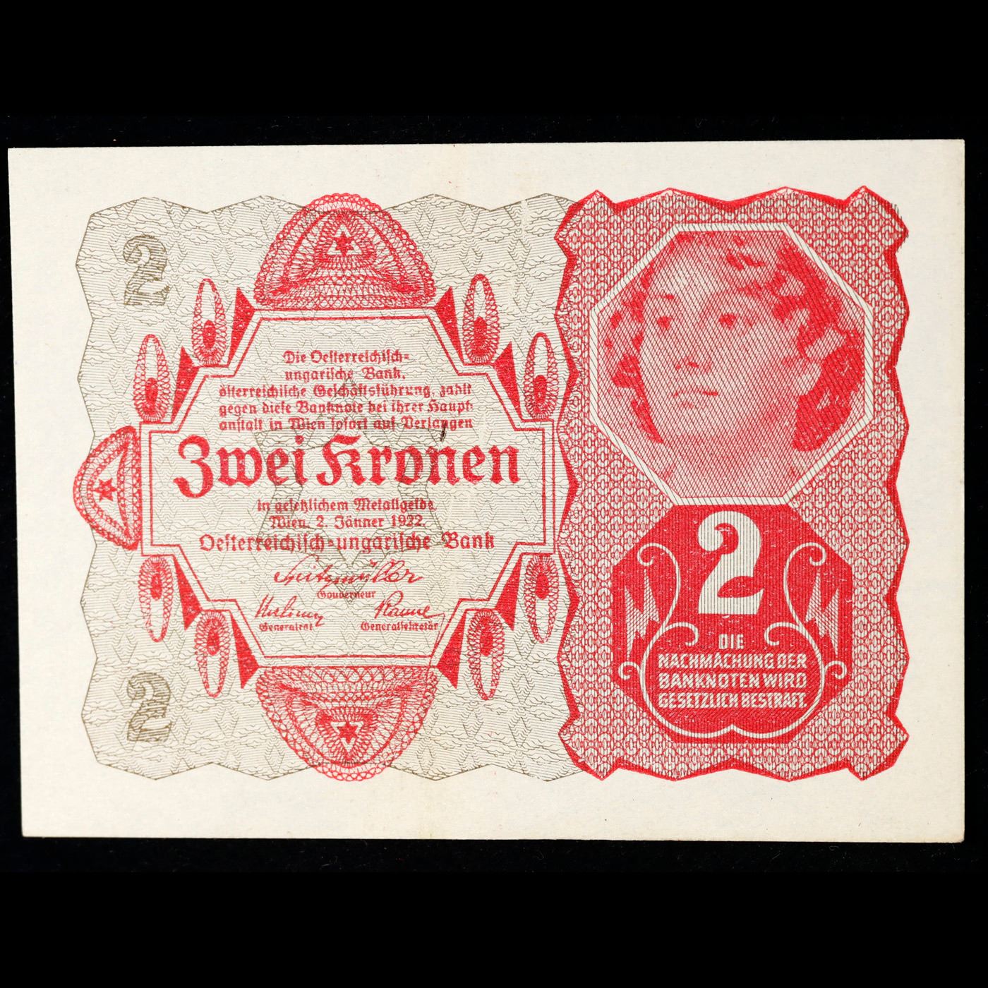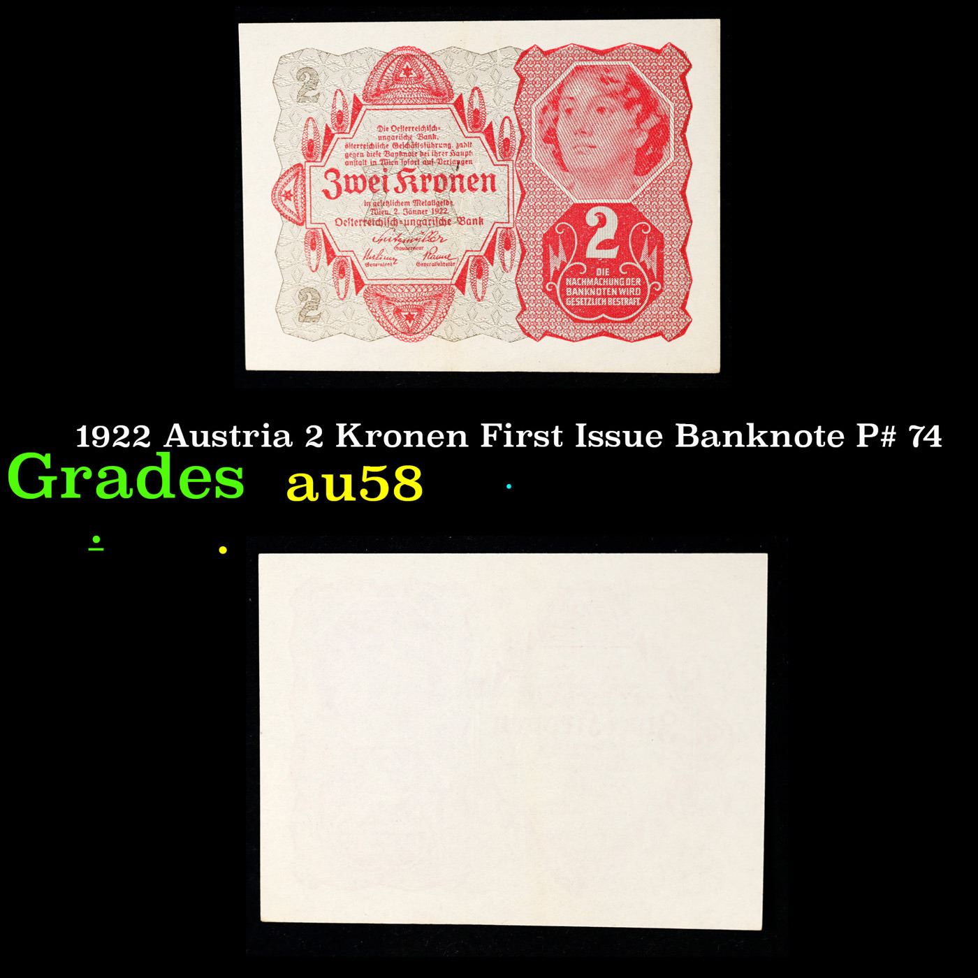 1922 Austria 2 Kronen First Issue Banknote P# 74 Grades Choice AU/BU Slider.