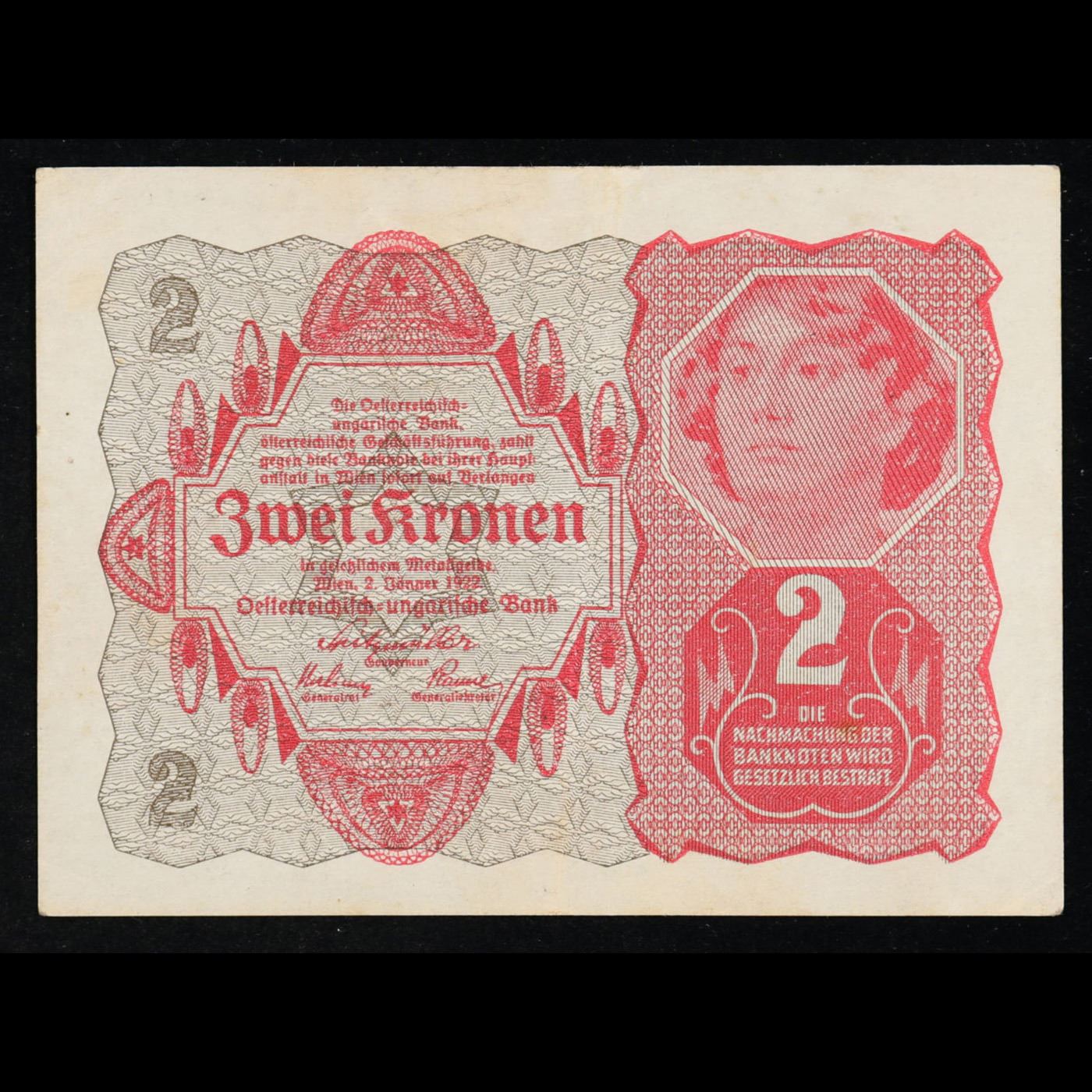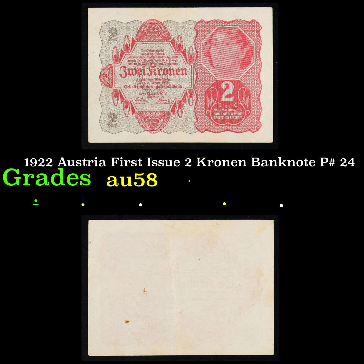 1922 Austria First Issue 2 Kronen Banknote P# 24 Grades Choice AU/BU Slider.