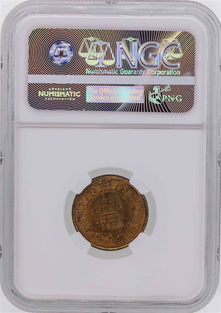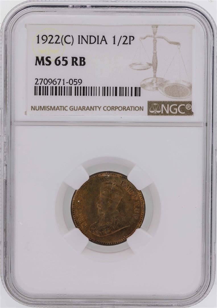 One 1922(C) India 1/2 Pice Coin NGC MS65RB. NGC Certified.
