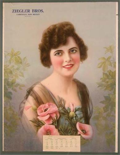 1922 calendar for Zigler Bros., Carnzozo, NM, metal bands top and bottom. 14" x 20"