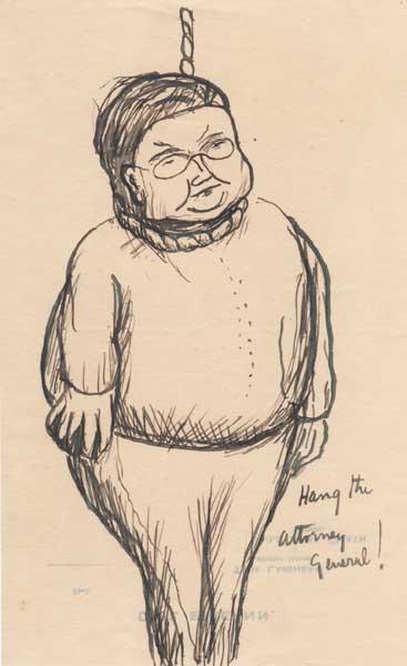 1922 Cartoon "Hang the Attorney General" (Hugh Kennedy) on Dail Eireann paper, and photograph of Pro Treaty meeting