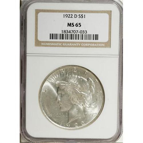 <B>1922-D $1 MS65 NGC.</B></I> NGC Census: (706/142). PCGS Population (996/139). Mintage: 15,063,000. Numismedia Wsl. Price for NGC/PCGS coin in MS65: $290. (#7358)<BR><BR><B>Coin Engraver:</B> Anthony de Francisci<BR><BR><b>Shipping:</b> Coins & Currency (<a target="_blank" href="http://www.heritageauctions.com/common/shipping.php">view shipping information</a>)