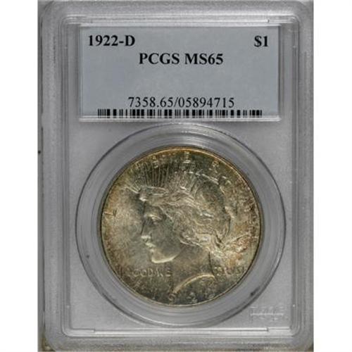 <B>1922-D $1 MS65 PCGS.</B></I> PCGS Population (1008/139). NGC Census: (717/146). Mintage: 15,063,000. Numismedia Wsl. Price for NGC/PCGS coin in MS65: $360. (#7358)<BR><BR><B>Coin Engraver:</B> Anthony de Francisci<BR><BR><b>Shipping:</b> Coins & Currency (<a target="_blank" href="http://www.heritageauctions.com/common/shipping.php">view shipping information</a>)