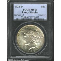 <TR><TD width="100%"><TABLE cellSpacing=1 cellPadding=3 width="100%" border=0><TBODY><TR><TD width="100%" bgColor=#79735c><FONT face=arial color=#ffffff size=3><B>Description</B> </FONT></TD></TR><TR><TD width="100%" bgColor=#ffffff><FONT face=arial size=2><B>1922-D $1 MS66 PCGS.</B></I> Ex: Larry Shapiro. The obverse has moderately freckled golden-brown, sea-green, and lilac colors, while the reverse has variegated peach and lavender patina. In addition to the lovely toning, this is a sharply struck and flashy premium Gem that has unusually well preserved surfaces. </FONT></TD></TR></TBODY></TABLE></TD></TR></TBODY></TABLE><BR><A name=PricesRealized></A><TABLE cellSpacing=0 cellPadding=0 width="100%" bgColor=#000000 border=0><TBODY><TR><TD width="100%"><TABLE cellSpacing=1 cellPadding=3 width="100%" border=0><TBODY><TR><TD width="100%" bgColor=#79735c><A name=PR><FONT face=arial color=#ffffff size=3><B>Previous Prices from Heritage Auctions</B> </FONT></A></TD></TR><TR><TD bgColor=#f6f6ed><TABLE cellSpacing=0 cellPadding=0 width="100%" border=1><TBODY><TR><TD align=middle width="33%"><B>Date</B></TD><TD align=middle width="33%"><B>Service</B></TD><TD align=middle width="33%"><B>Price</B></TD></TR><TR bgColor=whitesmoke><TD width="33%"><B>10/29/2002</B></TD><TD width="33%">PCGS</TD><TD width="33%">$1,265.00</TD></TR><TR bgColor=whitesmoke><TD width="33%"><B>02/16/2000</B></TD><TD width="33%">PCGS</TD><TD width="33%">$989.00</TD></TR><TR bgColor=whitesmoke><TD width="33%"><B>02/01/2000</B></TD><TD width="33%">PCGS</TD><TD width="33%">$1,150.00</TD></TR><TR bgColor=whitesmoke><TD width="33%"><B>03/01/1996</B></TD><TD width="33%">PCGS</TD><TD width="33%">$4,620.00</TD></TR><TR bgColor=whitesmoke><TD width="33%"><B>08/01/1996</B></TD><TD width="33%">PCGS</TD><TD width="33%">$3,850.00</TD></TR><TR bgColor=whitesmoke><TD width="33%"><B>01/08/1999</B></TD><TD width="33%">PCGS</TD><TD width="33%">$1,495.00</TD></TR><TR bgColor=whitesmoke><TD width="33%"><B>03/21/1998</B></TD><TD width="33%">PCGS</TD><TD width="33%">$1,840.00</TD></TR><TR bgColor=whitesmoke><TD width="33%"><B>02/23/2001</B></TD><TD width="33%">PCGS</TD><TD width="33%">$948.75</TD></TR><TR bgColor=whitesmoke><TD width="33%"><B>08/07/1998</B></TD><TD width="33%">PCGS</TD><TD width="33%">$1,725.00</TD></TR><TR bgColor=whitesmoke><TD width="33%"><B>03/21/1998</B></TD><TD width="33%">PCGS</TD><TD width="33%">$1,667.50</TD></TR><TR bgColor=whitesmoke><TD width="33%"><B>04/01/1999</B></TD><TD width="33%">PCGS</TD><TD width="33%">$1,541.00</TD></TR><TR bgColor=whitesmoke><TD width="33%"><B>09/01/1999</B></TD><TD width="33%">PCGS</TD><TD width="33%">$1,438.00</TD></TR><TR bgColor=whitesmoke><TD width="33%"><B>01/07/2000</B></TD><TD width="33%">PCGS</TD><TD width="33%">$1,035.00</TD></TR><TR bgColor=whitesmoke><TD width="33%"><B>07/30/2002</B></TD><TD width="33%">NGC</TD><TD width="33%">$948.75</TD></TR><TR bgColor=whitesmoke><TD width="33%"><B>04/27/2002</B></TD><TD width="33%">NGC</TD><TD width="33%">$776.25</TD></TR><TR bgColor=whitesmoke><TD width="33%"><B>09/23/1998</B></TD><TD width="33%">NGC</TD><TD width="33%">$935.00</TD></TR><TR bgColor=whitesmoke><TD width="33%"><B>06/26/2001</B></TD><TD width="33%">NGC</TD><TD width="33%">$950.00</TD></TR><TR bgColor=whitesmoke><TD width="33%"><B>03/13/1999</B></TD><TD width="33%">NGC</TD><TD width="33%">$977.50</TD></TR><TR bgColor=whitesmoke><TD width="33%"><B>01/08/1999</B></TD><TD width="33%">NGC</TD><TD width="33%">$1,265.00</TD></TR><TR bgColor=whitesmoke><TD width="33%"><B>09/01/1999</B></TD><TD width="33%">NGC</TD><TD width="33%">$1,208.00</TD></TR><TR bgColor=whitesmoke><TD width="33%"><B>03/01/1999</B></TD><TD width="33%">NGC</TD><TD width="33%">$863.00</TD></TR><TR bgColor=whitesmoke><TD width="33%"><B>03/21/1998</B></TD><TD width="33%">NGC</TD><TD width="33%">$1,265.00</TD></TR></TBODY></TABLE></TD></TR><TR><TD bgColor=#ffffff><FONT face=arial size=1 ?>PLEASE NOTE: All prices realized reflect the final hammer price PLUS the buyer's premium in auctions that charge a buyer's premium. Each item has a notation at the top of the listing indicating whether that lot included a buyer's premium. Example: A item that sells with a final hammer price of $100 and a 20% buyer's premium will display with a price realized of $120. All information listed is intended to be as accurate as possible, but errors are possible. Please use this guide carefully and inform us of any inaccuracies. </FONT></TD></TR></TBODY></TABLE></TD></TR></TBODY></TABLE><BR><TABLE cellSpacing=0 cellPadding=0 width="100%" bgColor=#000000 border=0><TBODY><TR><TD width="100%"><TABLE cellSpacing=1 cellPadding=3 width="100%" border=0><TBODY><TR><TD width="100%" bgColor=#79735c colSpan=6><FONT face=arial color=#ffffff size=3><B>Price Guide*</B> </FONT></TD></TR><TR bgColor=#f6f6ed><TD align=middle><B>Grade</B> </TD><TD align=middle><B>Coin World<BR>(Trends)</B> </TD><TD align=middle><B>Numismedia<BR>Retail</B> </TD><TD align=middle><B>Numismedia<BR>Wholesale</B> </TD><TD align=middle><B>Coin<BR>Universe</B> </TD><TD align=middle><B>Heritage<BR>Value Index</B> </TD></TR><TR bgColor=#ffffff><TD align=middle>65</TD><TD align=right>$450.00</TD><TD align=right>$350.00</TD><TD align=right>$280.00</TD><TD align=right>$375.00</TD><TD align=right>$295.88</TD></TR><TR style="FONT-WEIGHT: bold" bgColor=#cccfdd><TD align=middle>66</TD><TD align=right>$2,100.00</TD><TD align=right>---</TD><TD align=right>$1,050.00</TD><TD align=right>$1,900.00</TD><TD align=right>$1,211.25</TD></TR><TR bgColor=#ffffff><TD align=middle>67</TD><TD align=right>---</TD><TD align=right>---</TD><TD align=right>$18,550.00</TD><TD align=right>$30,000.00</TD><TD align=right>$18,200.00</TD></TR><TR bgColor=#ffffff><TD colSpan=6><FONT size=1>*All information listed is intended to be as accurate as possible, but errors are possible. No item may be returned or refused based on this information which is provided as a service to our customers. You should contact each pricing