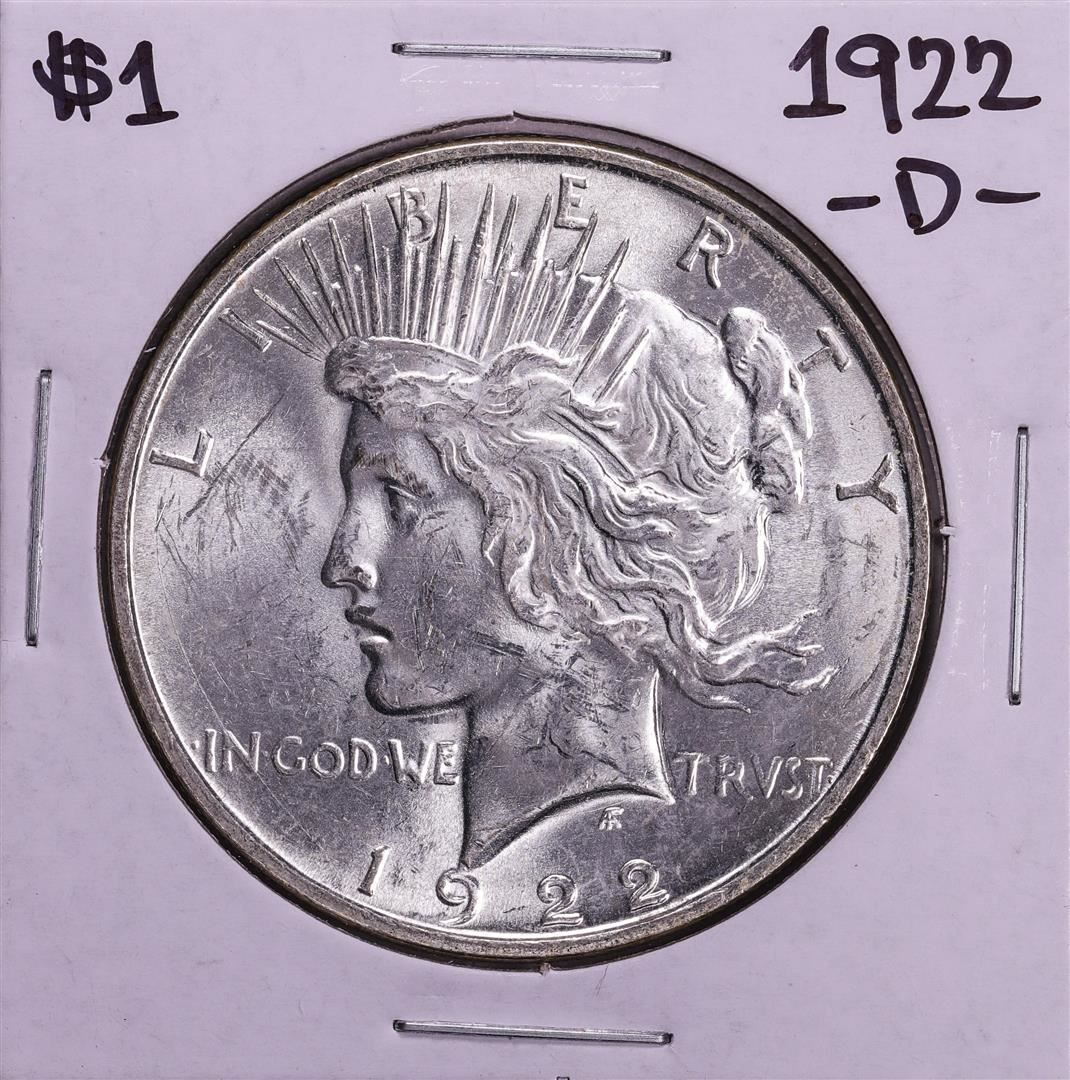 One 1922-D $1 Peace Silver Dollar Coin.