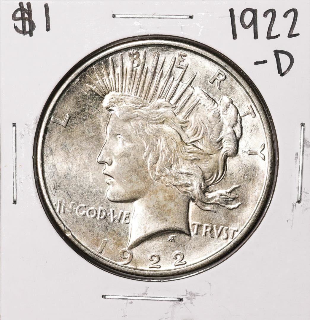 One 1922-D $1 Peace Silver Dollar Coin.