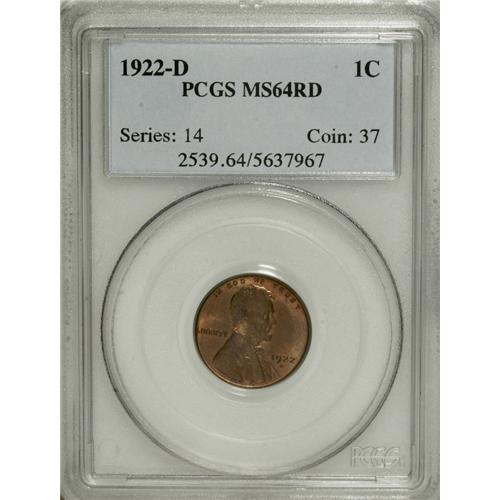 1922-D 1C MS64 Red PCGS. A beautiful near-Gem that boa