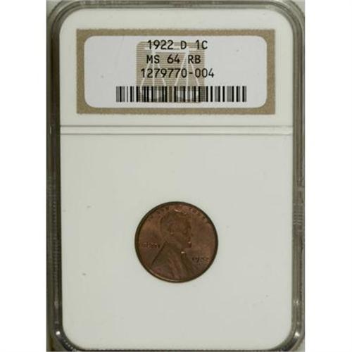<B>1922-D 1C MS64 Red and Brown NGC.</B></I> NGC Census: (115/33). PCGS Population (138/26). Mintage: 15,274,000. Numismedia Wsl. Price for NGC/PCGS coin in MS64: $136. (#2538)<BR><BR><b>Shipping:</b> Coins & Currency (<a target="_blank" href="http://www.heritageauctions.com/common/shipping.php">view shipping information</a>)