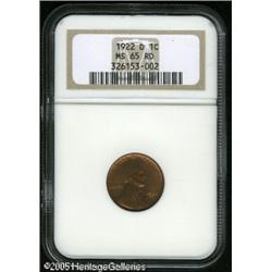 <B>1922-D 1C MS65 Red NGC.</B></I> Bright orange-red and crimson undertones. The surfaces are very well preserved with no distracting blemishes or carbon, and only a slight weakness of strike.<BR><I>From The Kim Mitchell Collection, Part Two.</B></I> Lot:5474