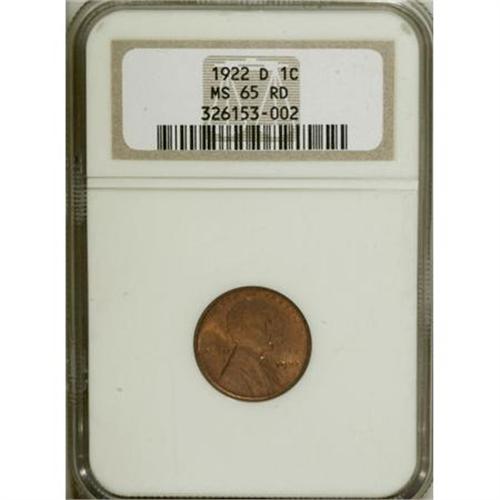 <B>1922-D 1C MS65 Red NGC.</B></I> The bright orange-red fields display crimson overtones. The surfaces are carefully preserved with no distracting blemishes or carbon. A pleasing representative of the only 1922-dated cent issue.<BR><BR><b>Shipping:</b> Coins & Currency (<a target="_blank" href="http://www.heritageauctions.com/common/shipping.php">view shipping information</a>)