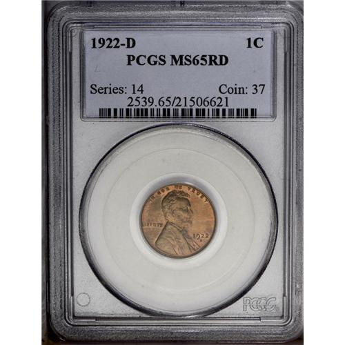 1922-D 1C MS65 Red PCGS. Sharply defined throughout, b
