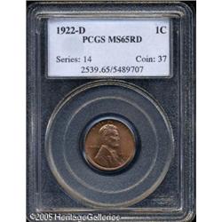 <B>1922-D 1C MS65 Red PCGS.</B></I> Well struck for the issue, and with shimmering luster across the unmarked surfaces. The obverse has crimson and rose hues, with hints of olive color intermingled throughout the reverse. Population: 75 in 65, 9 finer (1/05). Lot:5476