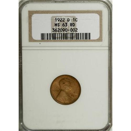 <B>1922-D 1C MS63 Red NGC.</B></I> NGC Census: (37/119). PCGS Population (64/312). Mintage: 15,274,000. Numismedia Wsl. Price for NGC/PCGS coin in MS63: $125. (#2539)<BR><BR><B>Coin Engraver:</B> Victor D. Brenner<BR><BR><b>Shipping:</b> Coins & Currency (<a target="_blank" href="http://www.heritageauctions.com/common/shipping.php">view shipping information</a>)