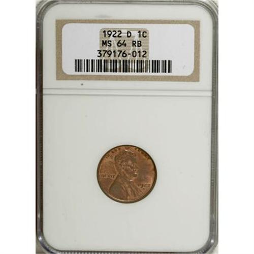 <B>1922-D 1C MS64 Red and Brown NGC.</B></I> NGC Census: (116/33). PCGS Population (147/27). Mintage: 15,274,000. Numismedia Wsl. Price for NGC/PCGS coin in MS64: $136. (#2538)<BR><BR><B>Coin Engraver:</B> Victor D. Brenner<BR><BR><b>Shipping:</b> Coins & Currency (<a target="_blank" href="http://www.heritageauctions.com/common/shipping.php">view shipping information</a>)