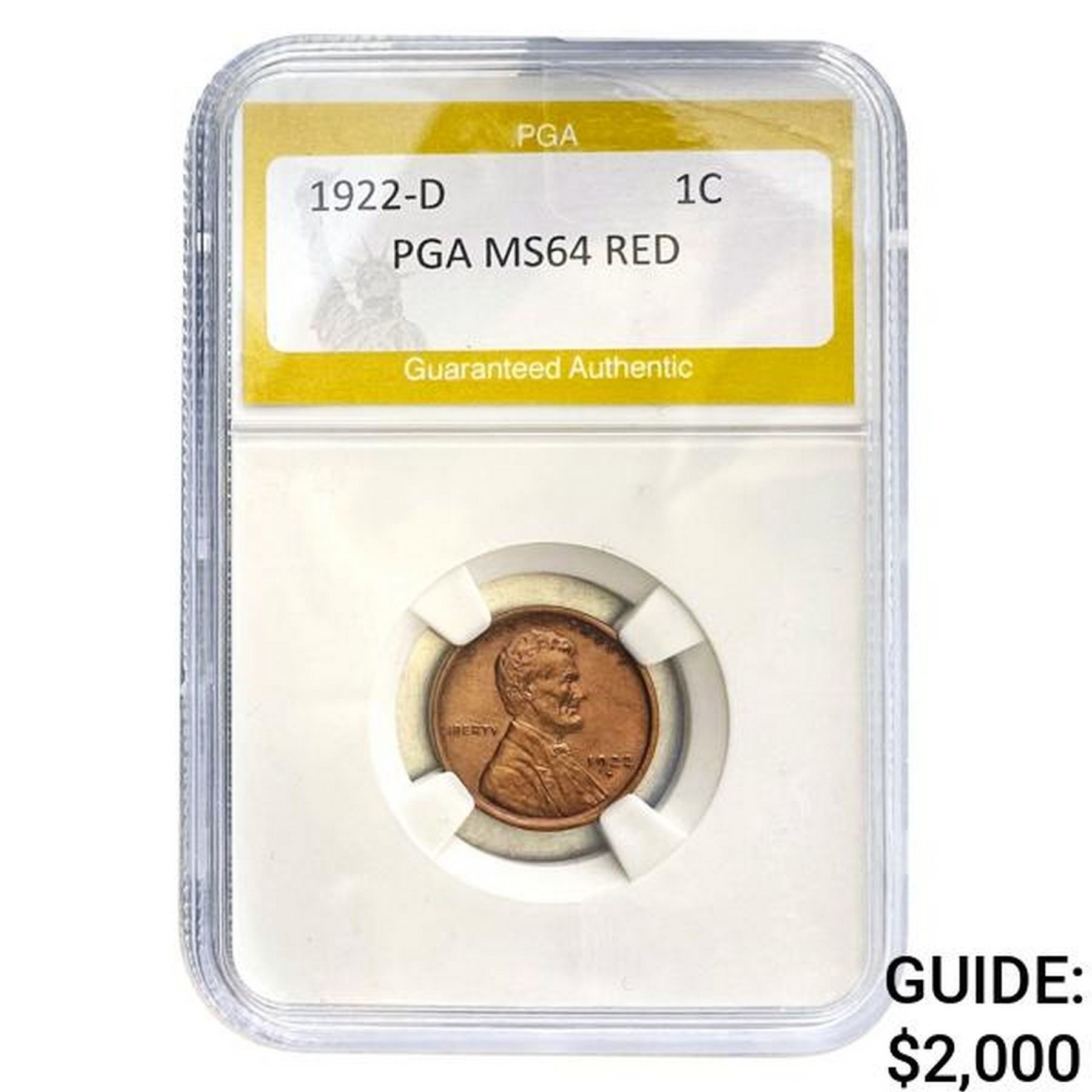 1922-D Lincoln Wheat Cent PGA MS64 RED
