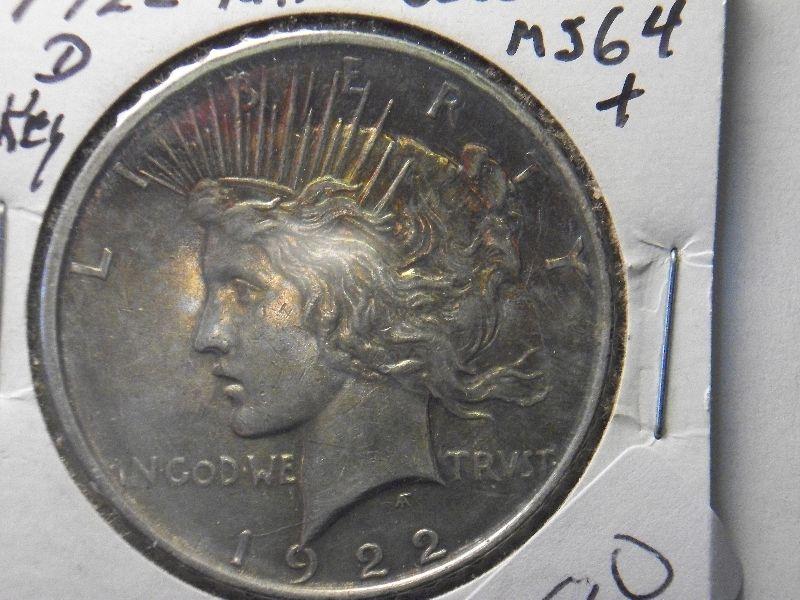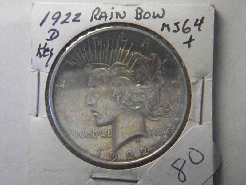 1922-D MS-64 PEACE DOLLAR RAINBOW RARE