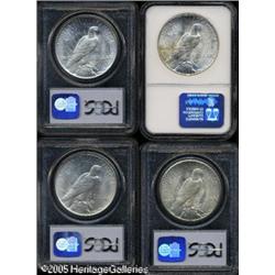 <B>1922-D<img border='0' src='http://www.heritagecoins.com/images/star.gif' width=10 height=10>$1 MS65 PCGS; 1922-S MS64 PCGS; 1923-S MS64 NGC;</B></I> and a <B>1926-D MS64 PCGS,</B></I> all are brilliant, excepting the '23-S which shows a hint of natural patina. A worthwhile lot of better date, Uncirculated Peace Dollars 4 Coins Lot:10687